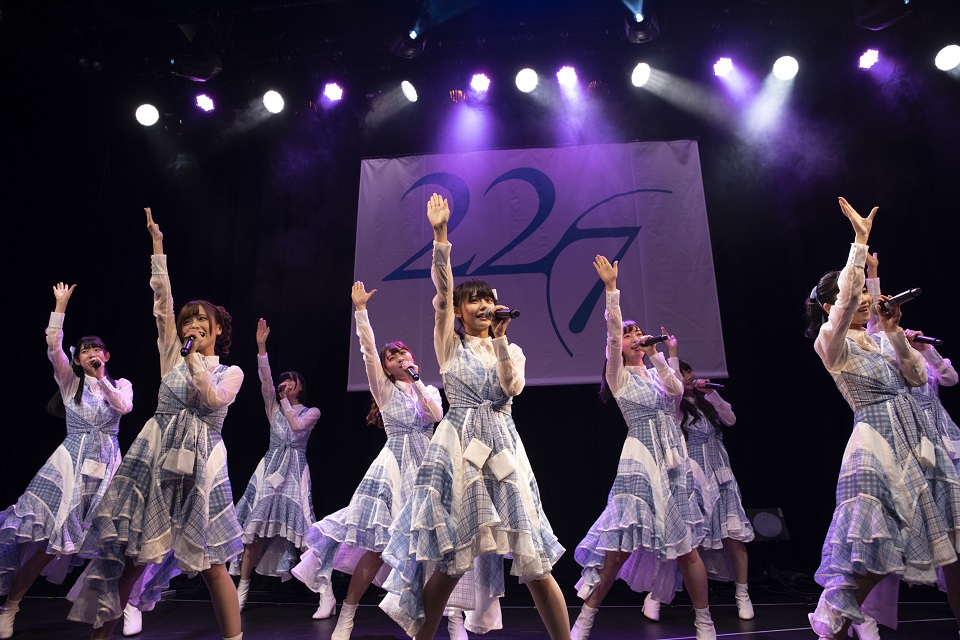 後ろ姿からひとりずつ振り向いていく振り付けが印象的な「不確かな青春」から、22/7初の定期公演“ナナニジライブ”が幕を開けた。